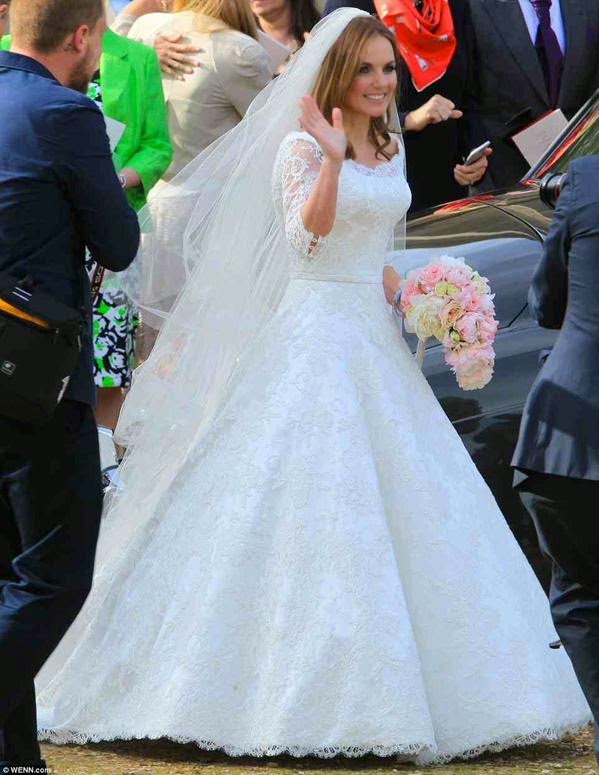 Tell me what you want, and you really really want. Spice girl, Geri Halliwell has finally got what she really really wants. She tied the knot today, 15th May, 2015 to her beau, Formula 1 boss Christian Horner. The wedding ceremony held at St Mary’s Church in Woburn, Bedfordshire. Her daughter, Bluebell Madonna, was one of her bridesmaids. See more pictures after jump.